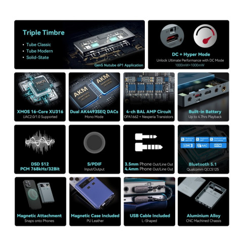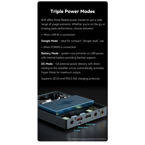 กำลังขับสูงสุด 1000 mW ขับหูฟังได้หลากหลาย ตั้งแต่ IEM ไปจนถึงหูฟังที่ต้องการพลัง