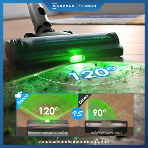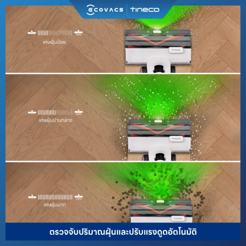 หัวแปรง 3DSense ผสาน DustSense, EdgeSense และ LightSense เพิ่มประสิทธิภาพการทำความสะอาดได้ถึง 66% เก็บได้ทั้งตามขอบ มุม และพื้นที่แสงน้อย