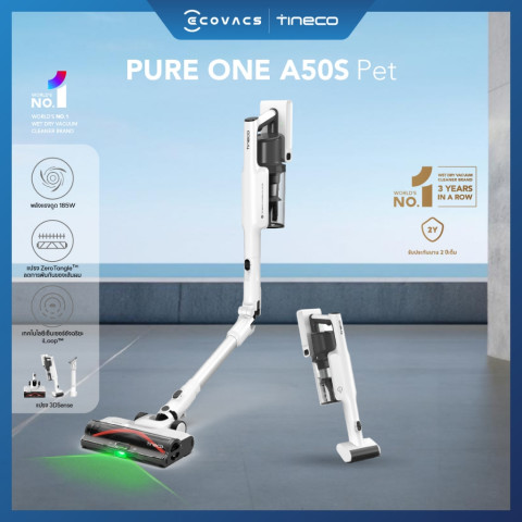 [New 2025] Tineco Pure One A50S Pet เครื่องดูดฝุ่นไร้สายพลังดูดจัดจ้าน ออกแบบมาเพื่อบ้านที่มีสัตว์เลี้ยงและการใช้งานทุกวัน ด้วยท่อพับวางราบได้ 180° ทำความสะอาดใต้โซฟา เตียง และตู้เตี้ยได้ง่ายโดยไม่ต้องก้มให้เมื่อย พร้อมระบบกรอง HEPA และเทคโนโลยีแยกฝุ่นขั้นสูง ช่วยให้บ้านสะอาดล้ำลึก อากาศสดชื่นขึ้นในทุกการใช้งาน