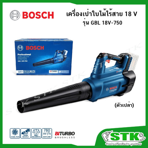 BOSCH เครื่องเป่าใบไม้ไร้สาย 18V รุ่น GBL 18V-750 (Solo) ของแท้ พลังแรงพร้อมลมเป่าทรงพลัง เหมาะสำหรับงานสวน งานทำความสะอาดพื้นที่รอบบ้าน โรงรถ ลานบ้าน หรือไซต์งาน ช่วยเป่าใบไม้ ฝุ่น เศษหญ้า และเศษผงต่างๆ ให้กองรวมได้รวดเร็ว โดยออกแบบให้จับถนัด น้ำหนักเบา ทำงานนานก็ไม่เมื่อยมือ