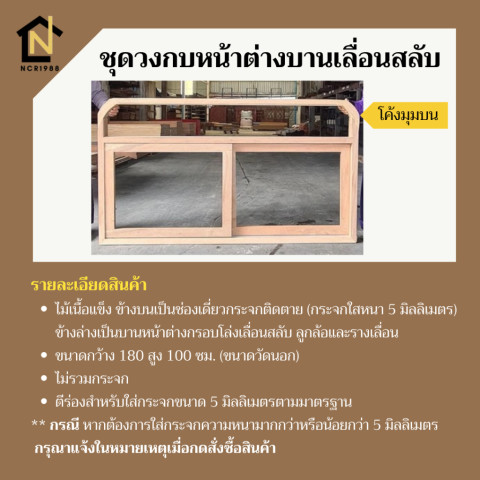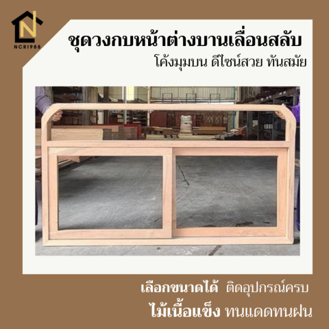 ชุดวงกบหน้าต่างบานเลื่อนสลับ โค้งมุมบน ไม้เนื้อแข็ง ดีไซน์สวยคลาสสิกด้วยทรงโค้งด้านบน พร้อมฟังก์ชันใช้งานจริง เหมาะสำหรับบ้านพักอาศัย ร้านค้า หรืองานรีโนเวทที่ต้องการเสน่ห์ของงานไม้แท้ โดยส่วนบนเป็นช่องแสงกระจกติดตาย ช่วยรับแสงธรรมชาติให้ภายในโปร่งสบาย ส่วนล่างเป็นบานเลื่อนสลับ เปิด-ปิดสะดวก พร้อมลูกล้อและรางเลื่อน (สินค้าไม่ทำสี ให้โชว์ลายไม้ธรรมชาติ)