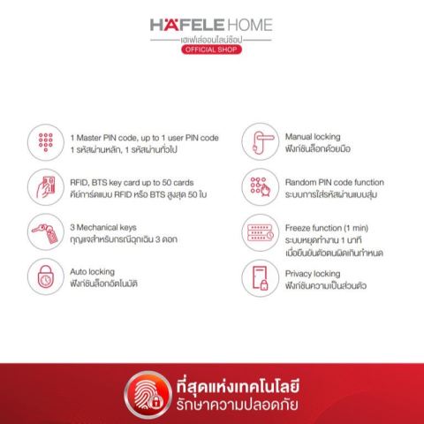 คีย์การ์ด/แท็ก บันทึกได้สูงสุด 50 ใบ (รองรับบัตร Mifare และบัตร Rabbit) พร้อมฟังก์ชันยกเลิกบัตรที่สูญหาย