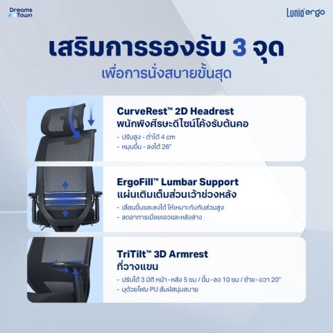 รองรับสรีระครบจุด ตั้งแต่ศีรษะ หลัง เอว แขน ไปจนถึงต้นขา เพื่อลดอาการเมื่อยล้า