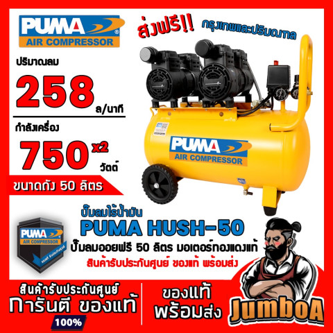 PUMA HUSH-50 (HUSH50 / HUSH 50) ปั๊มลมไร้น้ำมัน (Oil Free) ของแท้ รับประกันศูนย์ พร้อมส่ง ราคา 8,840.00 บาท