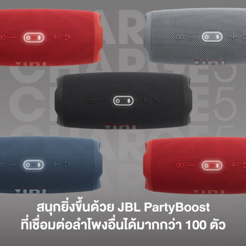 Bluetooth: กดปุ่ม Bluetooth แล้วค้นหา “JBL Charge 5” เพื่อเชื่อมต่อ