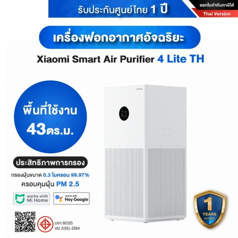 ครอบคลุมอย่างมีประสิทธิภาพ 27 ตร.ม. และสามารถกรองห้อง 48 ตร.ม. ได้ 2 รอบ พร้อมอัตราการผลิตอากาศบริสุทธิ์ (CADR) 230 ลบ.ม./ชม.Xiaomi Smart Air Purifier 4 Lite TH – คุ้มค่าสำหรับห้อง 25–43 ตร.ม.