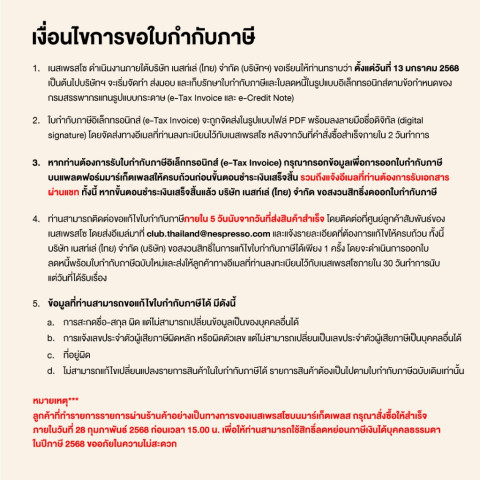 ติดต่อขอรับบริการ: Nespresso Club Nestle (Thai) Ltd. เลขที่ 999/9 ถนนพระราม 1 แขวงปทุมวัน กรุงเทพฯ 10330