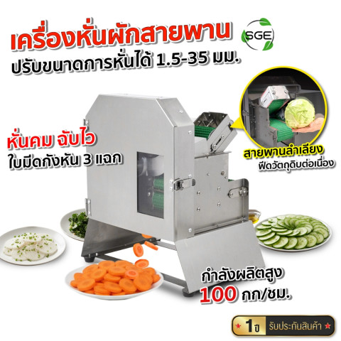 SGE เครื่องหั่นผักสายพาน รุ่น VS-SPIN ราคา 9,306.00 บาท ตัวช่วยยกระดับงานเตรียมผักให้เร็วและสม่ำเสมอกว่าเดิม เพียงใส่วัตถุดิบลงบนระบบสายพานลำเลียง แล้วให้เครื่องจัดการต่อด้วย ใบมีดกังหัน 3 แฉก ที่หั่นคม ฉับไว ได้ชิ้นงานขนาดเท่ากัน ลดเวลาการทำงาน และเพิ่มกำลังผลิตให้เหมาะกับร้านอาหาร ครัวกลาง และธุรกิจแปรรูปอาหาร