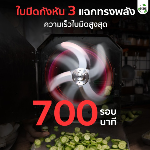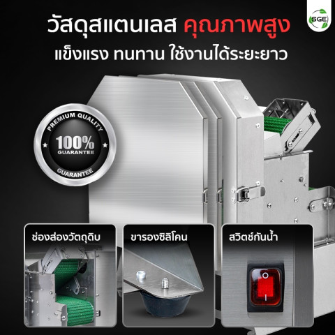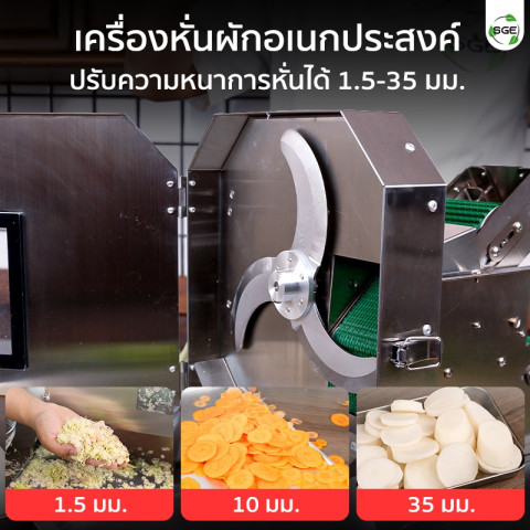 ปรับความเร็วแยกกันได้ ปรับความเร็ว ใบมีด และ สายพาน แยกอิสระ เพื่อให้เหมาะกับชนิดผักและความหนาที่ต้องการ