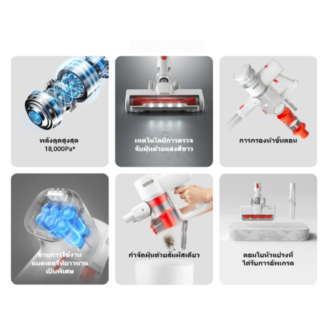 พลังดูดสูงสุด 18,000Pa พร้อมมอเตอร์ความเร็วสูงและระบบไฟฟ้าออกแบบใหม่ เพื่อการดูดฝุ่นที่ทรงพลัง