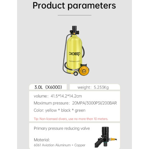 ดำน้ำได้อย่างอิสระและปลอดภัยมากขึ้นกับ ชุดถังดำน้ำ DIDEEP ความจุสูง 3L-4L แบบพกพา พร้อมการรับประกันในพื้นที่ ออกแบบมาเพื่อการดำน้ำเพื่อการพักผ่อนและกิจกรรมดำน้ำกีฬา ให้คุณเพลิดเพลินกับโลกใต้น้ำได้ยาวนานประมาณ 30–50 นาที (ขึ้นอยู่กับสภาพร่างกายและระดับความลึก) ทั้งยังมาพร้อมชุดอุปกรณ์ครบเซ็ตพร้อมใช้งาน