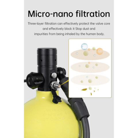 ความจุถัง 3L–4L ช่วยให้ดำน้ำได้ลึกประมาณ 1–10 เมตร นานราว 30–50 นาที (ขึ้นกับความจุปอดผู้ใช้และความลึกในการดำน้ำ)