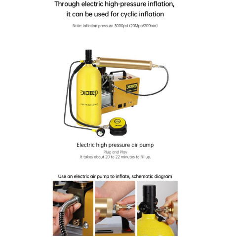 แรงดันการเติมสูงสุดไม่เกิน 3000 PSI และห้ามเติมก๊าซที่มีปริมาณออกซิเจนมากกว่า 40% ควรใช้อากาศอัดที่สะอาดและแห้งเท่านั้น