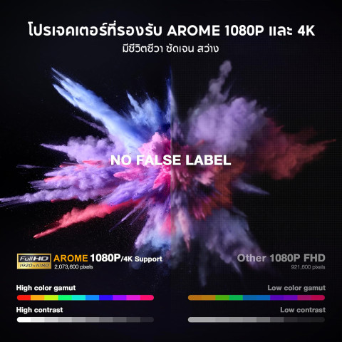 ความสว่าง 500 ANSI + ความละเอียด Full HD 1080P – ให้ภาพคมชัด สีสวย สู้แสงห้องเปิดไฟหรือแสงห้างได้สบาย