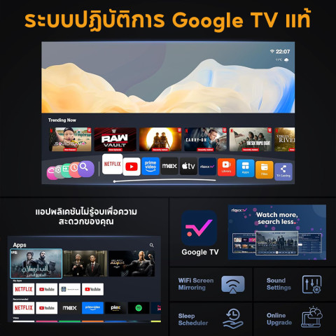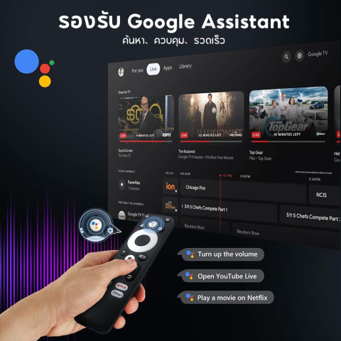 รีโมทภาษาไทย + Google Assistant – สั่งงานด้วยเสียงได้เลย แค่พูดว่า “เปิด Netflix” หรือ “หาหนังแอคชั่น” สะดวกสุดๆ