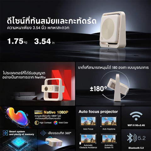 สำหรับคนที่มองหาโปรเจคเตอร์ตัวเดียวที่ทำได้ครบทั้งดูหนัง ซีรีส์ ฟุตบอล YouTube เกม และพรีเซนต์งาน FUNFOOX AROME Google TV โปรเจคเตอร์ 1080P 500ANSI รองรับ 4K คือคำตอบที่คุ้มค่าที่สุดตัวหนึ่งในงบนี้ กดสั่งตอนนี้เพื่อจับจองความบันเทิงจอใหญ่ก่อนของหมด!