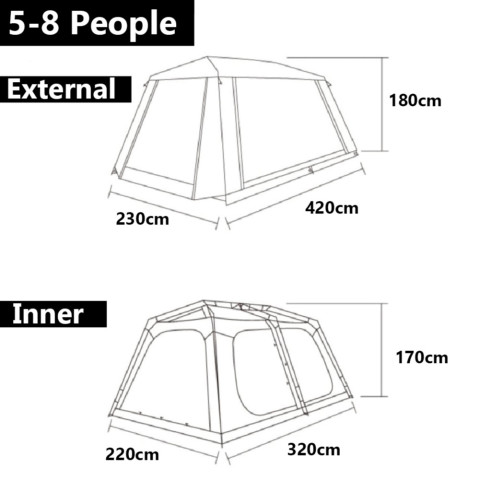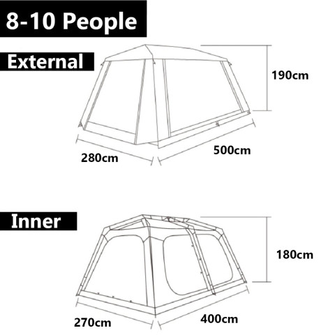 ขนาดเต็นท์ด้านใน (ใหญ่/L): 400 × 270 × 180 ซม.