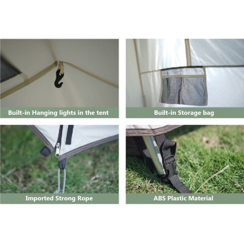 โครงสร้างแบบ กรอบอลูมิเนียมอัตโนมัติ ช่วยให้กางได้ง่ายและรวดเร็ว ลดความยุ่งยากเวลาถึงแคมป์ พร้อมผ้ากันน้ำคุณภาพสูงและพื้นกันซึมแน่นหนา มั่นใจได้ทั้งวันแดดและคืนฝน อีกทั้งมี ตาข่ายกันยุงความหนาแน่นสูง ช่วยให้อากาศถ่ายเทดี หลับสบาย ไม่อึดอัด