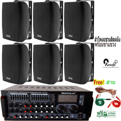 ชุดลำโพงเครื่องเสียง แอมป์ขยายเสียง พร้อมตู้ลำโพงแขวน 5 นิ้ว 600W จำนวน 6 ใบ รุ่น AV-3344 + CK-5B เหมาะสำหรับห้องอาหาร ร้านคาราโอเกะ งานประชาสัมพันธ์ ห้องประชุม และห้องเรียน ให้เสียงชัด กระจายเสียงได้ทั่วพื้นที่ ติดตั้งง่าย ใช้งานได้หลากหลาย พร้อมอุปกรณ์ครบชุดพร้อมต่อใช้งานในเซ็ตเดียว