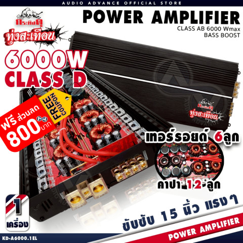 เพาเวอร์แอมป์ class d ขับซับ 15นิ้ว แรงๆ กระทิงดุ 6000W KD-A6000.1EL เพาเวอร์แอมป์ เพาเวอร์ขับซับ ราคา 3,381 บาท เพาเวอร์ตัวแรงสำหรับสายเบสที่ต้องการพละกำลังแบบจัดเต็ม ขับซับ 15 นิ้วได้สบายด้วยกำลังถึง 6000W มาพร้อมภาคขยายแบบมอสเฟสและระบบจ่ายไฟที่ออกแบบมาเพื่อเน้นความเสถียรของเสียง เบสแน่น ดุดัน และต่อเนื่องไม่มีสะดุด เหมาะสำหรับติดตั้งในรถยนต์ที่เน้นระบบเสียงเบสหนักๆ สไตล์กระทิงดุ