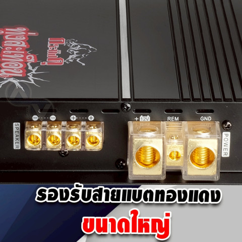 ตัวเครื่องมีขนาดใหญ่และยาว รองรับการขับซับวูฟเฟอร์ 15 นิ้วได้แบบสบายๆ แนะนำให้ใช้คู่กับสายแบตขนาดใหญ่ เพื่อให้กระแสไฟวิ่งได้เต็มที่และรักษาคุณภาพเสียงอย่างต่อเนื่อง ช่องต่อสายแบตและกราวด์รองรับเส้นผ่านศูนย์กลางสายได้สูงสุด 13 มม. เหมาะสำหรับระบบเสียงที่เน้นงานประกอบมืออาชีพ