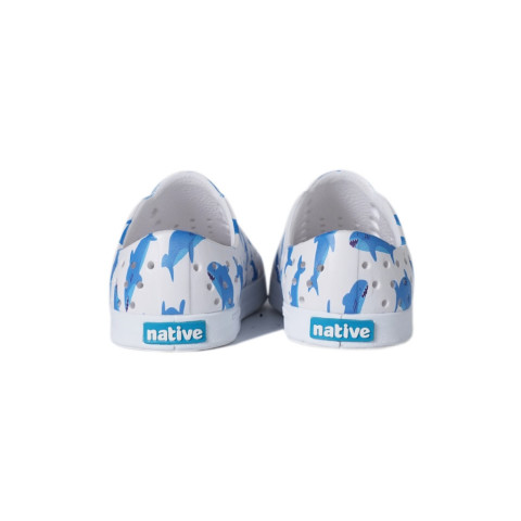 เลือก Native Jefferson Print Shell White/Sharks ให้ลูกน้อยได้รองเท้ากันน้ำสุดน่ารักที่เบา ยืดหยุ่น และพร้อมลุยทุกวันอย่างสนุกสนาน