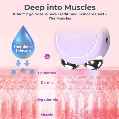 ด้วยกระแสไฟฟ้าระดับต่ำ Microcurrent ที่ปรับได้สูงสุดถึง 550 μA BEAR™ 2 go ช่วยกระตุ้นกล้ามเนื้อบนใบหน้าและลำคอทั้ง 69 มัด ให้ยกกระชับขึ้นอย่างเป็นธรรมชาติ เสริมด้วยการสั่น T-Sonic™ 5 ระดับ ที่ช่วยกระตุ้นระบบไหลเวียนเลือดและน้ำเหลือง ลดความบวม ผิวดูสดใสขึ้น และช่วยผลักสารบำรุงให้ซึมลึกสู่ผิวได้ดียิ่งขึ้น ใช้งานร่วมกับสกินแคร์ที่คุณชื่นชอบได้อย่างลงตัว เหมาะสำหรับการดูแลผิวทั้งเช้า–เย็น หรือระหว่างวันเมื่อรู้สึกว่าผิวล้าหมอง