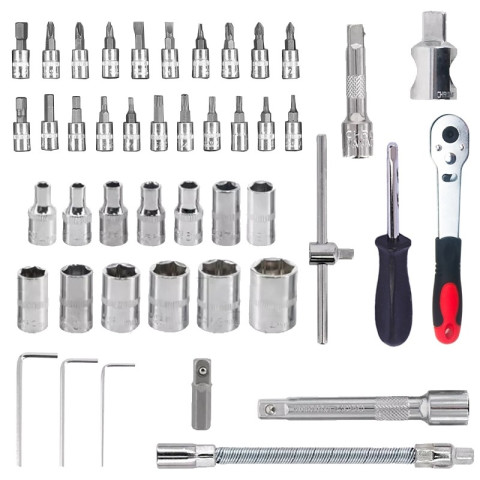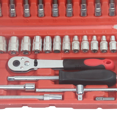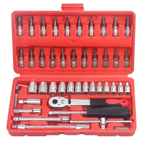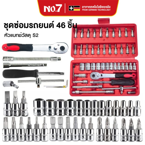 NO.7 ชุดเครื่องมือบล็อกชุด ประแจ 46 ชิ้น ขนาด 1/4" Socket Set ชุดเครื่องมือช่างอเนกประสงค์สำหรับงานซ่อมรถ ซ่อมมอเตอร์ไซค์ งานช่างภายในบ้าน รวมถึงงานติดตั้งประกอบเฟอร์นิเจอร์ต่างๆ ครบจบในชุดเดียว ผลิตจากเหล็ก CR-V คุณภาพสูง รองรับงานหนัก ไม่เป็นสนิม ใช้งานทนทานยาวนาน มาพร้อมกล่องเก็บแบบล็อกแน่นหนา พกพาสะดวก ในราคาคุ้มค่าเพียง 79.20 บาท