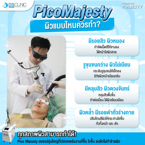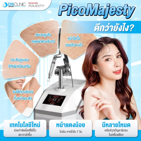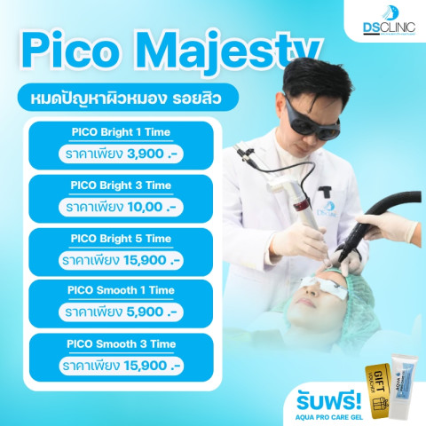 โปรแกรม Pico Majesty นวัตกรรมเลเซอร์รุ่นใหม่จาก DSCLINIC ที่ออกแบบมาเพื่อตอบโจทย์ทุกปัญหาผิวหมองคล้ำ รอยสิว รูขุมขนกว้าง และหลุมสิวลึกโดยเฉพาะ ด้วยเทคโนโลยีเลเซอร์ความละเอียดสูง Picocare Majesty ที่ให้พลังงานแม่นยำ ตรงจุด เห็นผลไว โดยไม่ทำร้ายผิวรอบข้าง ช่วยฟื้นฟูโครงสร้างผิวจากภายใน ให้ผิวเรียบเนียน กระจ่างใสอย่างเป็นธรรมชาติในระยะเวลาสั้นๆ พร้อมโปรโมชั่นพิเศษรับหน้าหนาว แถมฟรี Aqua Pro Care Gel เจลบำรุงผิวสูตรเข้มข้น ช่วยกักเก็บความชุ่มชื้นและปลอบประโลมผิวหลังทำเลเซอร์ได้อย่างอ่อนโยน