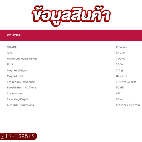 ขนาดลำโพง: 6 x 9 นิ้ว 3 ทาง