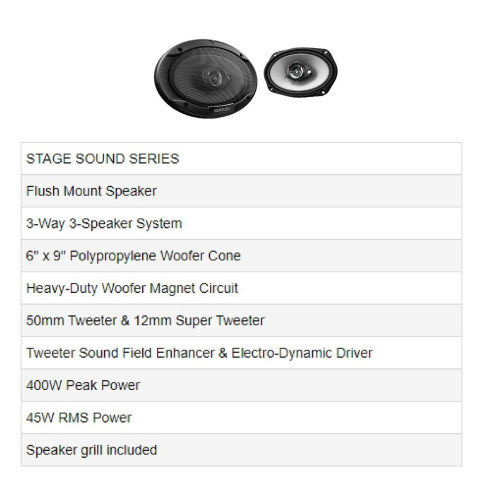 ด้วยดีไซน์แบบลำโพงแกนร่วม 3 ทาง (3-Way Coaxial) ขนาด 6x9 นิ้ว ช่วยให้คุณได้ทั้งเสียงทุ้มกระชับ เสียงกลางชัดเจน และเสียงแหลมใสเป็นธรรมชาติในตัวเดียว รองรับกำลังขับจากเพาเวอร์แอมป์หรือตัวเครื่องเล่นเดิมได้ดี ทั้งยังติดตั้งง่ายเข้ากับรถยนต์หลากหลายรุ่น เพียงติดตั้งให้ถูกวิธีโดยช่างผู้ชำนาญ คุณก็พร้อมสัมผัสประสบการณ์เสียงระดับพรีเมียมบนทุกเส้นทาง