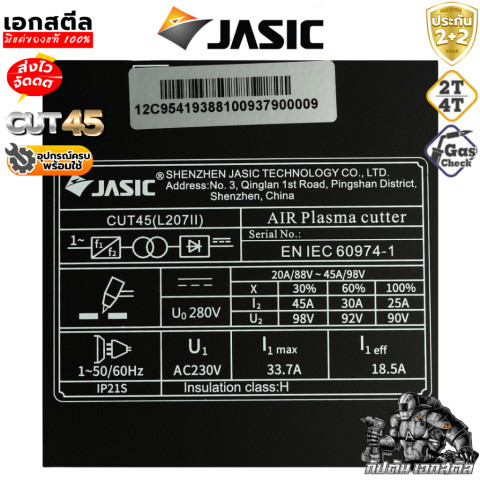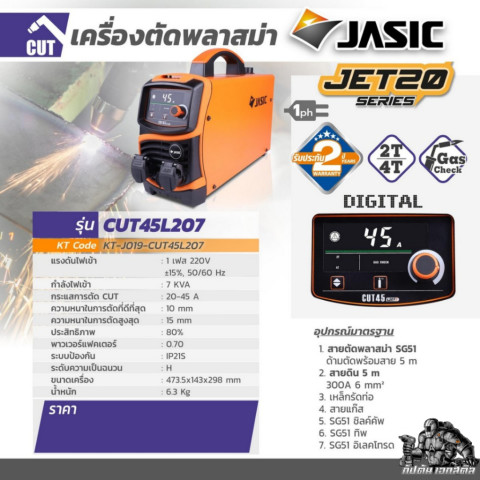 (ส่งไว) JASIC เครื่องตัดพลาสมา CUT45L207II (CUT45) เครื่องตัดพลาสม่าขนาดกะทัดรัด ตัดงานได้คม ลื่น และรวดเร็ว เหมาะสำหรับงานช่าง งานซ่อมบำรุง งานผลิตโครงสร้างเหล็ก และงานตัดแผ่นโลหะทั่วไป ใช้ไฟบ้าน 1 เฟส 220V ติดตั้งง่าย ตอบโจทย์ทั้งมืออาชีพและผู้เริ่มต้นที่ต้องการเครื่องตัดที่คุ้มค่าในงบเดียว