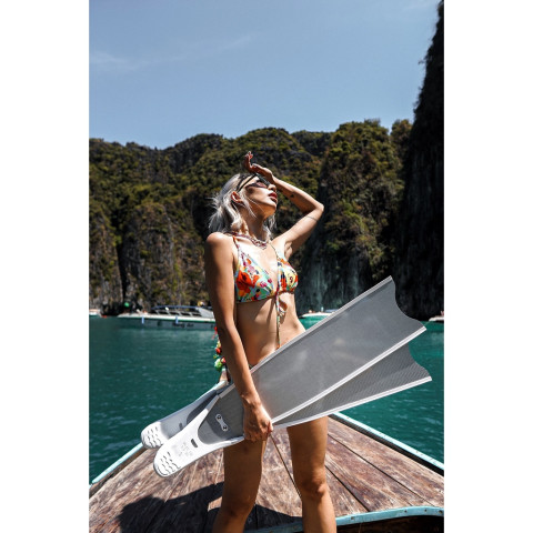 ประสิทธิภาพเหนือกว่า ด้วยโครงสร้าง Pure Carbon ให้การถ่ายแรงต่อเนื่อง สปริงตัวดี ช่วยลดอาการล้าเมื่อต้องว่ายระยะไกลหรือทำสถิติความลึก