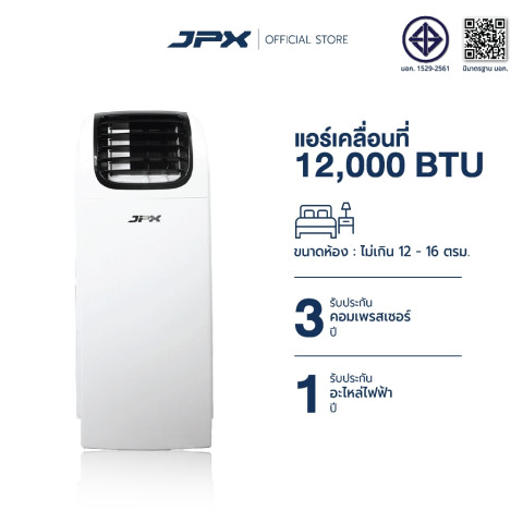 [ใช้โค้ดลด25%] แอร์เคลื่อนที่ JPX 12,000 BTU เย็นเร็ว ลมแรง เคลื่อนย้ายง่าย เหมาะสำหรับห้องขนาด 12–16 ตร.ม. (สูงสุดประมาณ 16 ตร.ม.) ตอบโจทย์ทั้งคอนโด ห้องนอน ห้องทำงาน หรือพื้นที่ที่ติดตั้งแอร์บ้านไม่ได้ พร้อม มอก. และการรับประกันอุ่นใจ ใช้งานได้มั่นใจทุกฤดูร้อน