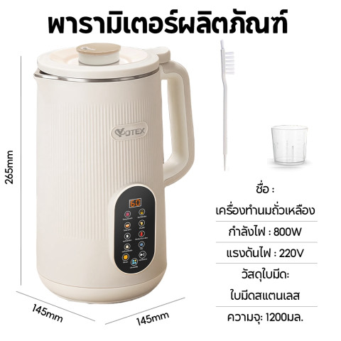 Yotex เครื่องทำนมถั่วเหลือง/เครื่องปั่นน้ำธัญพืชเพื่อสุขภาพ ความจุ 1200 มล. (สี White) ในราคา 499.80 บาท ตัวช่วยทำเครื่องดื่มและอาหารเหลวได้ง่าย ๆ ที่บ้าน ด้วยการทำงานแบบเรียบง่ายแต่ครบเครื่อง ปั่นได้เนียนละเอียด รสสัมผัสนุ่มนวล พร้อมระบบทำความสะอาดอัตโนมัติ ช่วยประหยัดเวลาในทุกวัน