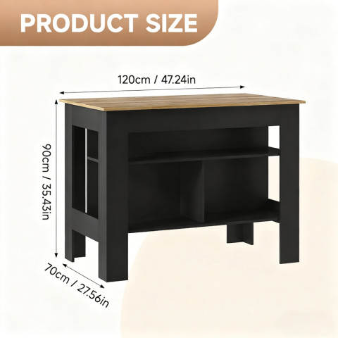 โต๊ะเกาะสามชั้น ไม้คุณภาพสูง ห้องครัว โต๊ะข้าง โต๊ะรับประทานอาหาร (ขนาด 120 ซม.) ในโทน สีดำ+ลายไม้ ดีไซน์เรียบหรูแบบด้าน เข้ากับครัวได้หลากหลายสไตล์ ตั้งแต่มินิมอล โมเดิร์น ไปจนถึงวินเทจ เพิ่มจุดเด่นให้พื้นที่ครัวทันที พร้อมพื้นที่จัดเก็บหลายระดับ ช่วยลดความรกและทำให้หยิบใช้งานสะดวกมากขึ้น