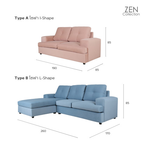 L-shape ขนาด 2.60 m. : 260 x 85(170) x 85 ซม.