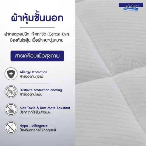 ผ้าหุ้มชั้นนอก: ผ้าคอตตอนนิทแจ็คการ์ด (Cotton Knit) หนานุ่มสบาย ช่วยป้องกันไรฝุ่น