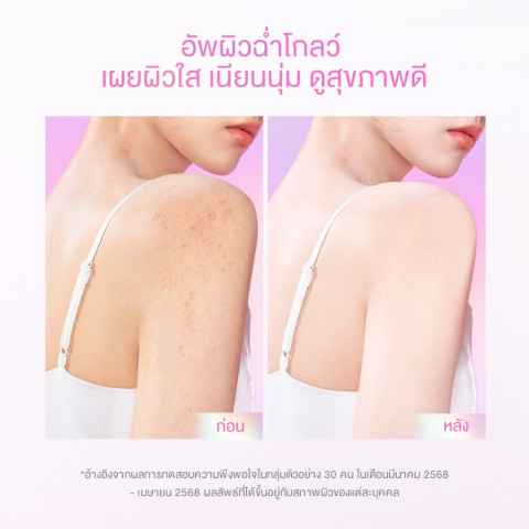 *ผลลัพธ์อ้างอิงจากการทดสอบความพึงพอใจในกลุ่มตัวอย่าง 30 คน ช่วงเดือนมีนาคม 2568 – เมษายน 2568 ทั้งนี้ผลลัพธ์ที่ได้อาจแตกต่างกันไปตามสภาพผิวของแต่ละบุคคล