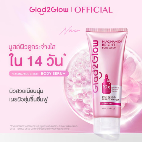 เซรั่มน้ำหอมบำรุงผิวกายสูตรเพื่อผิวดูกระจ่างใส เนื้อสัมผัสบางเบา เกลี่ยง่าย ซึมไว ไม่เหนียวเหนอะหนะ ช่วยเติมความชุ่มชื้นให้ผิวยาวนาน ผสาน Niacinamide, Vitamin B5 และ Vitamin E ช่วยให้ผิวดูเนียนนุ่ม เปล่งประกาย พร้อมเผยผิวดูขาวกระจ่างใสอย่างเป็นธรรมชาติช่วยให้ผิวดูกระจ่างใส เรียบเนียน สีผิวดูสม่ำเสมอภายใน 14 วัน* เมื่อใช้เป็นประจำ