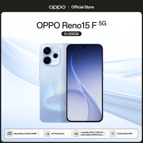สัมผัสประสบการณ์สมาร์ทโฟนรุ่นใหม่ที่ทั้งสวย ลื่นไหล และใช้งานได้นานตลอดวันกับ [New] OPPO Reno15 F (8+256G) สมาร์ทโฟนกล้องสวย ชาร์จไว แบตอึด ที่ออกแบบมาเพื่อตอบโจทย์ทั้งสายโซเชียล เกมเมอร์ และคนทำงาน ที่ต้องการเครื่องเดียวจบครบทุกฟังก์ชัน