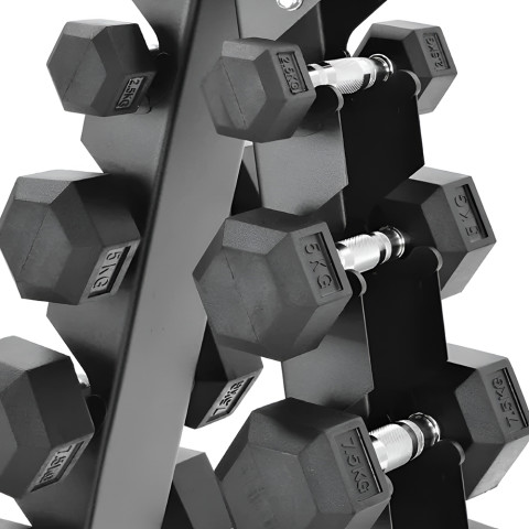 ดีไซน์ตั้งพื้นทรงเอ ช่วยจัดเก็บดัมเบลเป็นแนวตั้ง ใช้พื้นที่น้อย