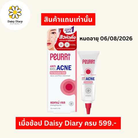 เงื่อนไขของแถม: ซื้อสินค้า DAISY DIARY ครบ 599.- ขึ้นไป (หลังหักส่วนลด) ต่อคำสั่งซื้อ รับฟรี PEURRi Anti Acne Gel 8g 1 ชิ้น จนกว่าสินค้าจะหมด