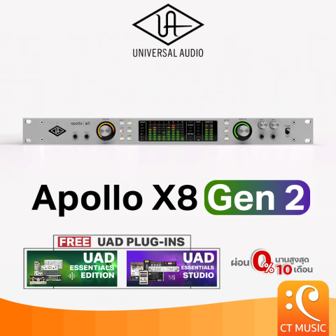 ปลดล็อกศักยภาพงานเสียงระดับสตูดิโอโปรด้วย Universal Audio Apollo X8 Gen 2 Audio Interface อินเตอร์เฟสแบบแร็ค 18 x 24 Thunderbolt ที่ออกแบบมาสำหรับโปรดิวเซอร์และวิศวกรเสียงที่ต้องการคุณภาพเสียงระดับมืออาชีพ พลังการประมวลผลปลั๊กอินมหาศาล และระบบมอนิเตอร์ที่แม่นยำเหนือระดับ พร้อมดีลสุดคุ้มทั้งส่วนลดและเงินคืนเมื่อสั่งซื้อวันนี้