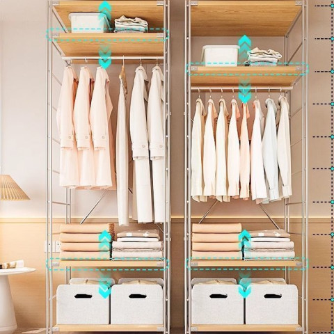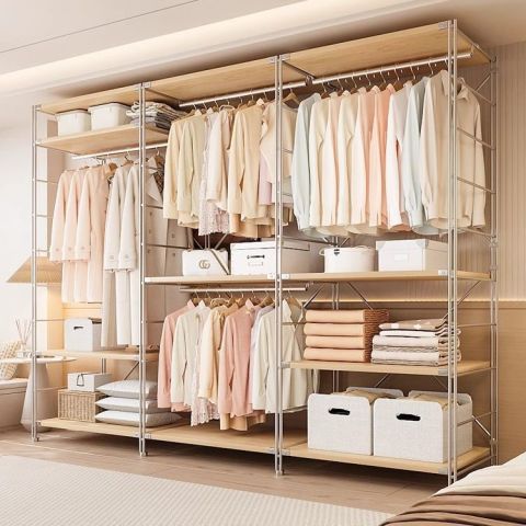 ดีไซน์โปร่งโล่ง ใช้งานง่าย – ราวแขวนแบบเปิดช่วยให้เลือกเสื้อผ้าได้รวดเร็ว เหมาะกับไลฟ์สไตล์เร่งรีบ และคนที่ต้องการจัดแคปซูลวอร์ดโรบ