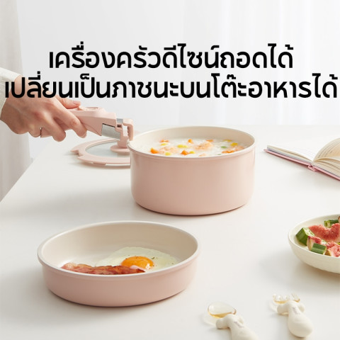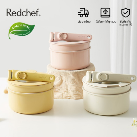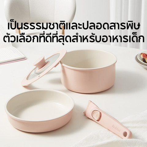 Redchef ชุดเครื่องครัวหินเซรามิกไม่ติดพร้อมที่จับแบบถอดได้ 4 ชิ้นกระทะไม่ติด PFAS & PTFE & PFOA ฟรีเข้ากันได้กับเตาตั้งพื้นทั้งหมด