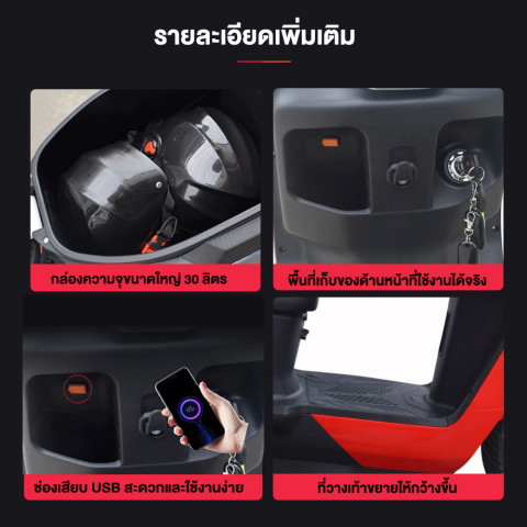 ความจุพื้นที่เก็บของ: บังกี๋/กล่องเก็บของใต้เบาะ ประมาณ 30 ลิตร