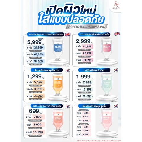 คอร์สนี้มาพร้อมทั้งหมด 5 ครั้ง ในราคาเพียง 7,999.50 บาท ช่วยให้คุณได้ดูแลผิวต่อเนื่องอย่างมีประสิทธิภาพ วิตามินและสารบำรุงผิวเกรดคุณภาพสูงถูกส่งตรงเข้าสู่ร่างกาย ช่วยเสริมความกระจ่างใส ปรับสภาพผิวให้สม่ำเสมอ ลดความหมองคล้ำ และเพิ่มความชุ่มชื้นจากภายในสู่ภายนอก
