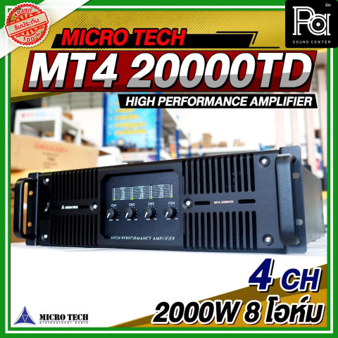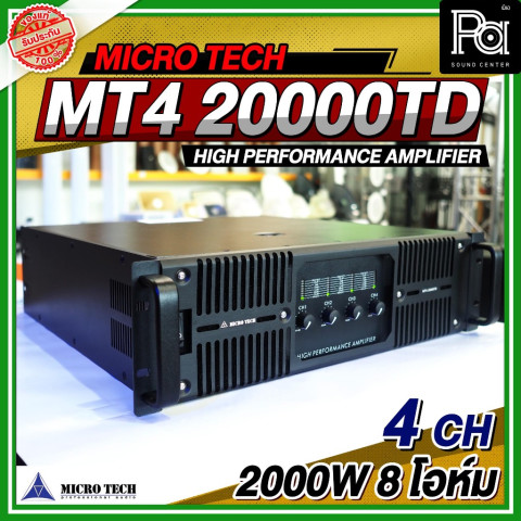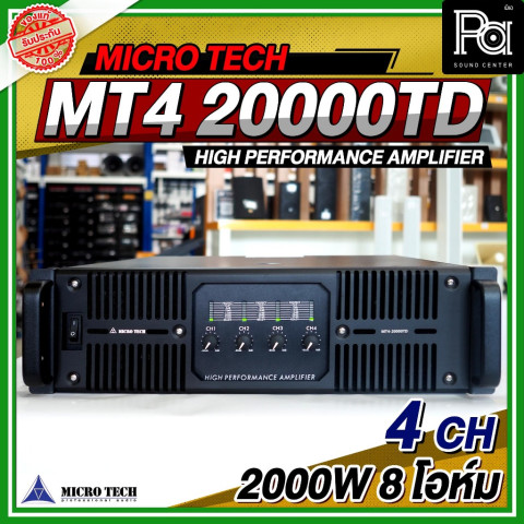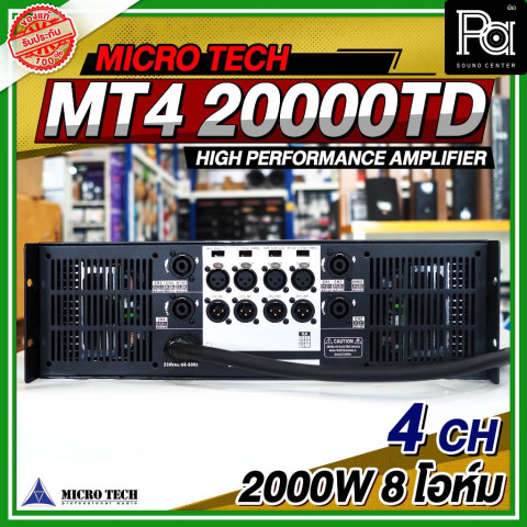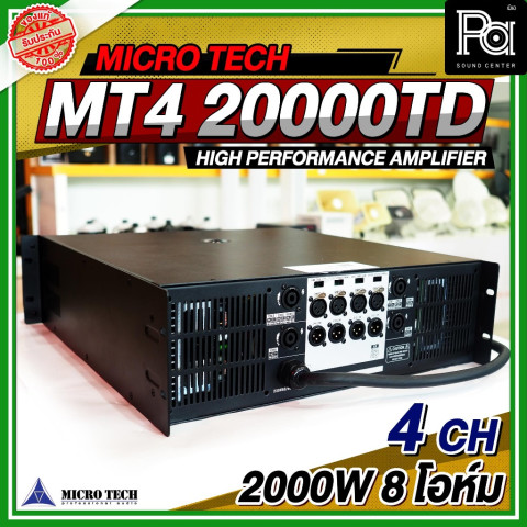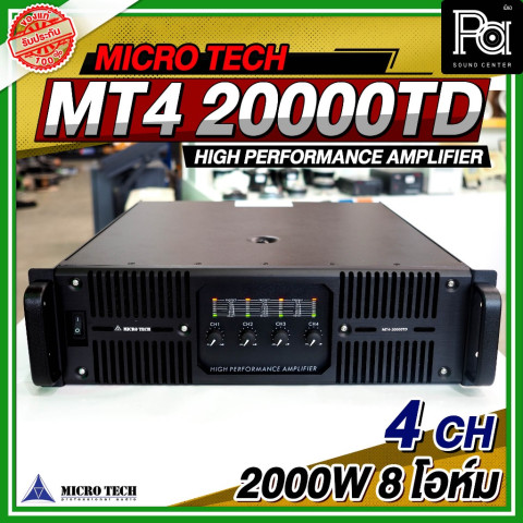 MICRO TECH MT4 20000TD POWER AMP เพาเวอร์แอมป์มืออาชีพ 4 แชลแนล ที่ออกแบบมาเพื่อรองรับงานเสียงทุกรูปแบบ ไม่ว่าจะเป็นงานกลางแจ้ง งานอีเวนต์ งานคอนเสิร์ต หรือระบบ PA ในสถานที่ขนาดกลางถึงใหญ่ มาพร้อมกำลังขับสูงถึง 2000 วัตต์ต่อแชลแนลที่ 8 โอห์ม ให้พลังเสียงหนักแน่น คมชัด และมั่นคงตลอดการใช้งาน เหมาะอย่างยิ่งสำหรับมืออาชีพด้านงานระบบเสียงที่ต้องการความเสถียรและคุณภาพเสียงระดับโปร