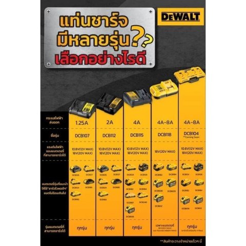 หากคุณต้องการแท่นชาร์จที่ “ชาร์จไว รองรับครบ และพร้อมใช้งานจริง” สำหรับแบตเตอรี่ DEWALT หลายรุ่น DCB104-QW คืออุปกรณ์ที่ช่วยให้การทำงานของคุณลื่นไหล ไม่สะดุดเรื่องแบตหมดระหว่างงาน